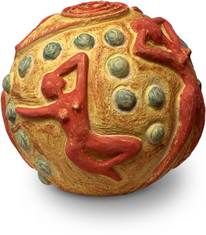 Die ausgewogene Form der Kugel ist Ausgangspunkt für die bildhafte, ornamentale bis reliefartige Oberflächengestaltung. Auf ihr vereinigen sich die unterschiedlichsten Kulturkreise zur Einheit.