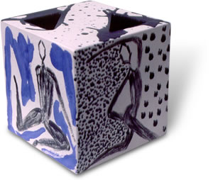 Die strenge geometrische Form des Würfels steht im Gegensatz zur lockeren Oberflächenbearbeitung und bildet eine neue Harmonie.